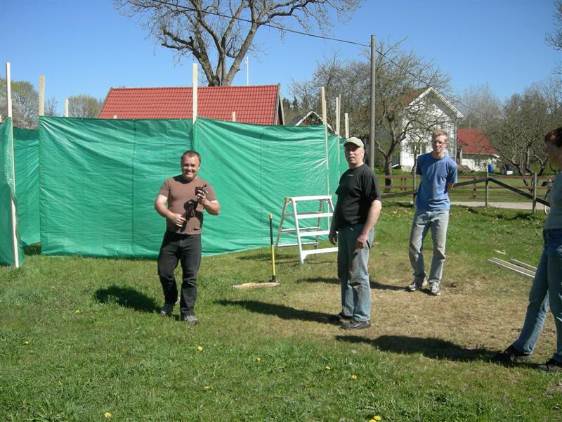 Toaletterna är i år uppfräschade med nya presenningar och nytt virke. TC-chef Tony med medhjälpare arbetade hårt under hela lördagen.