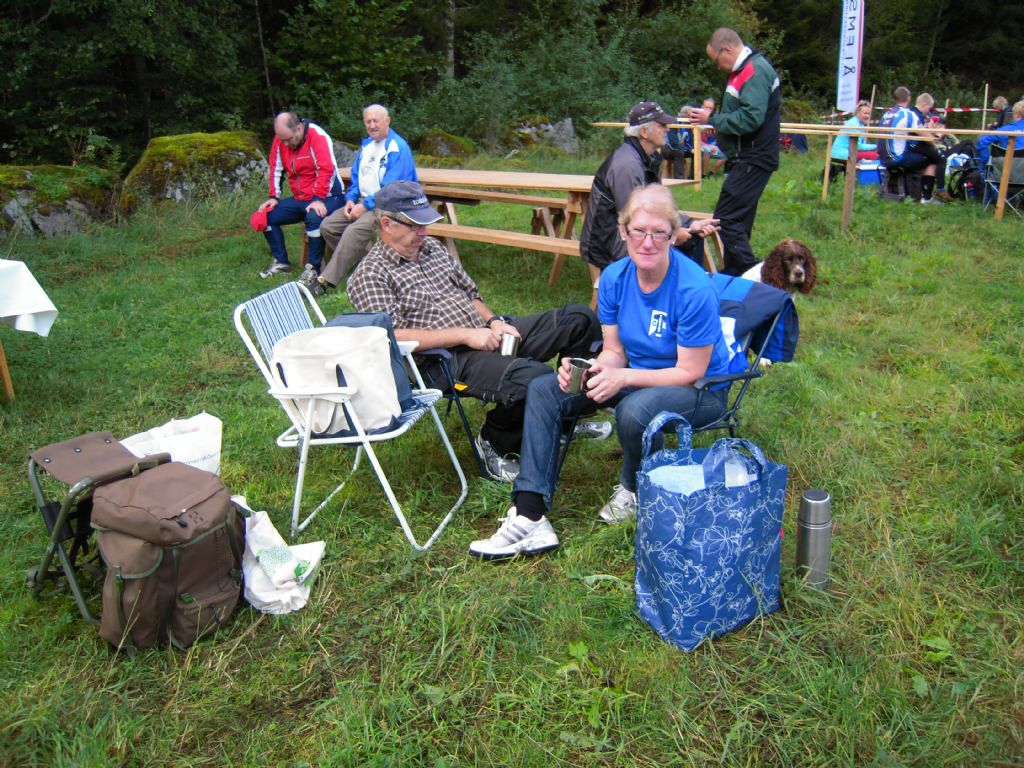 Tommy och Ulla tar igen sig efter alla förberedelser inför tävlingen. Ulla fungerade som biträdande tävlingsledare.