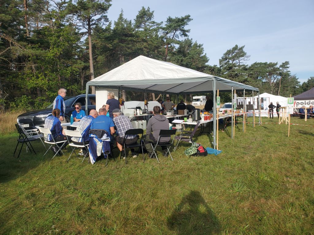 Förutom tidigare nämnda funktioner hade vi även Pölder sport, sjukvård av Röda Korset, barnpassning, viltrapport, vatten efter målgång, marka, toalett, prisbord och resultattavla på plats på arenan. En nyhet, som arv från pandemitiden, var att vi inte erbjöd dusch på arenan. Detta råder det delade meningar om då en del tycker att det innebär att det sociala i orienteringen till viss del försvinner och även att framför allt våra ungdomar vänjer sig vid att inte duscha efter idrottande. Dessa saker tog flera upp i deltagarenkäten i Eventor. I den andra vågskålen ska nämnas att det innebär en stor lättnad för arrangörerna att slippa fylla en tankbil och bygga upp duschar. Ja, denna debatten förs just nu i hela Orienteringssverige.